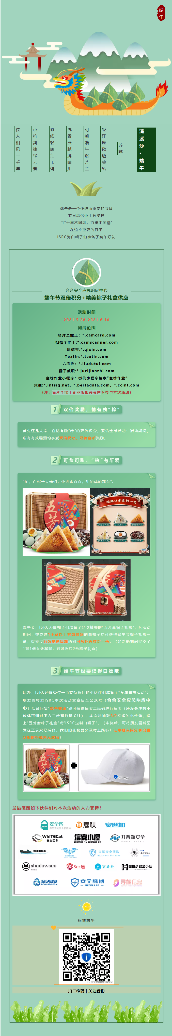 公告編号:ISRC端午節雙倍獎勵+精美粽子禮盒供應作(zuò)者:ISRC*Admin發布日(rì)期:2021/05/27