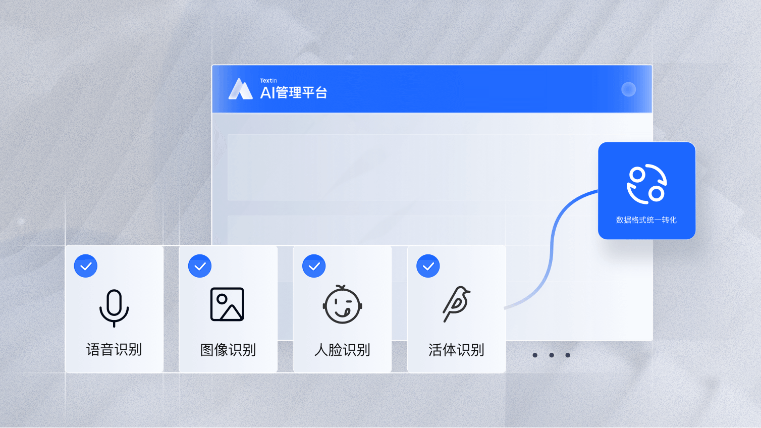 支持除合合之外第三方提供的文字識别、語音識别、圖像識别、人(rén)臉識别、活體(tǐ)識别等AI能力接入,并将不同接口及數據格式統一轉化